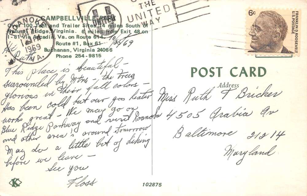 Buchanan Virginia Cambellville Trailer Park and Beach Vintage Postcard AA105671