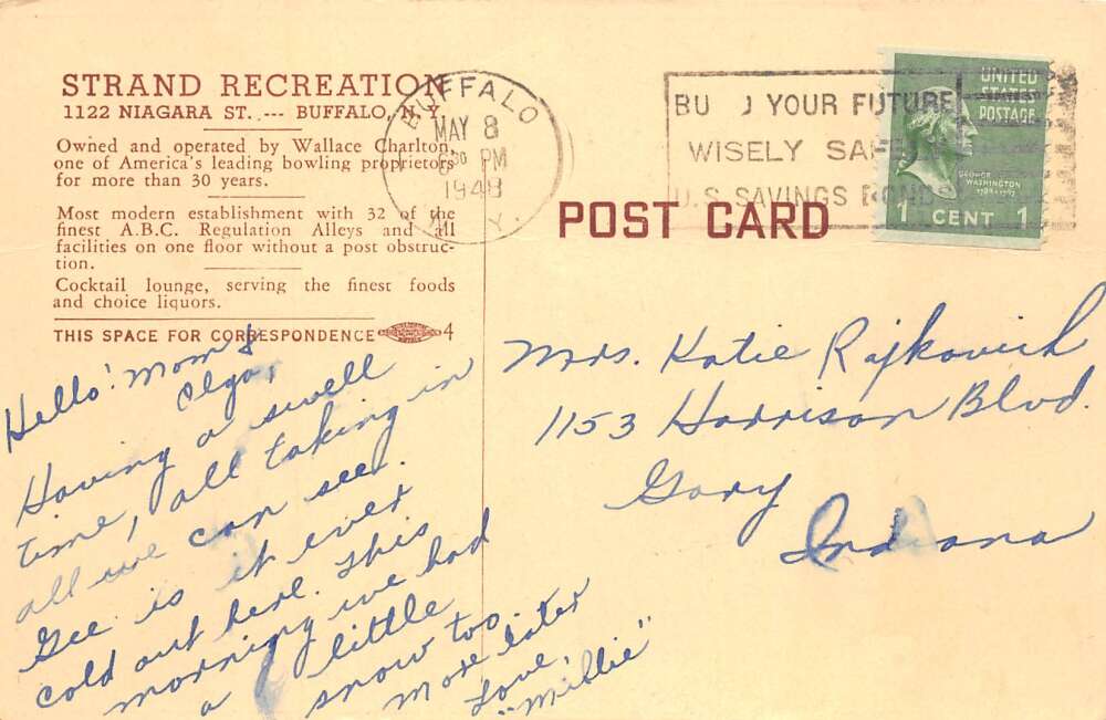 Buffalo New York Strand Recreation Bowling Alley Interior Postcard AA104099