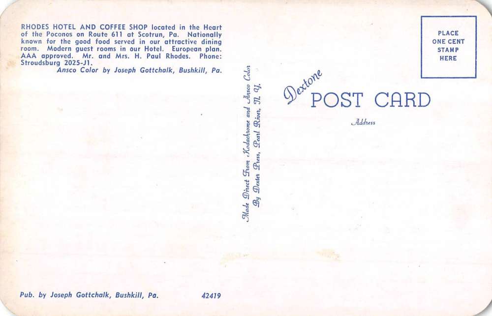 Bushkill Pennsylvania Rhodes Hotel Coffee Shop Antique Postcard KA688558