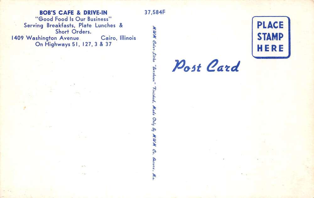 Cairo Illinois Bob’s Cafe and Drive In Dining Room Interior Postcard AA78983