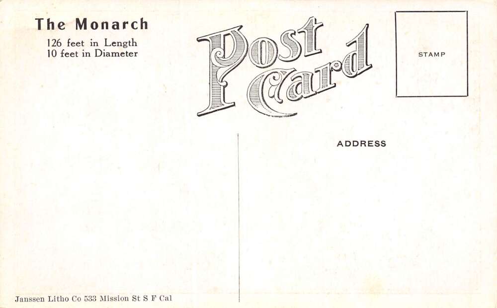 Calistoga California Petrified Forest, The Monarch, Vintage Postcard U26374
