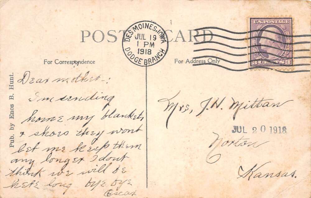Camp Dodge iowa Motorcycle Brigade Vintage Postcard AA79040