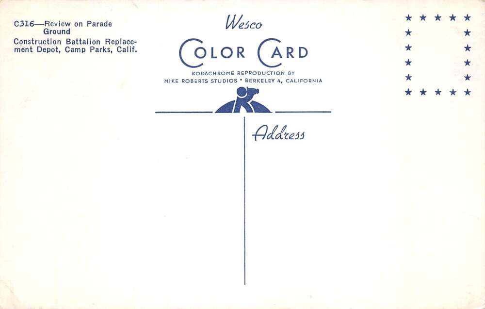 Camp Parks California Review on Parade Ground Aerial View Postcard AA77921