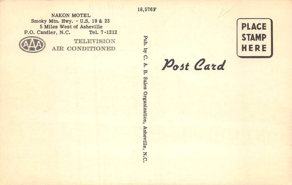 Candler North Carolina Nakon Motel Linen Vintage Postcard AA72014