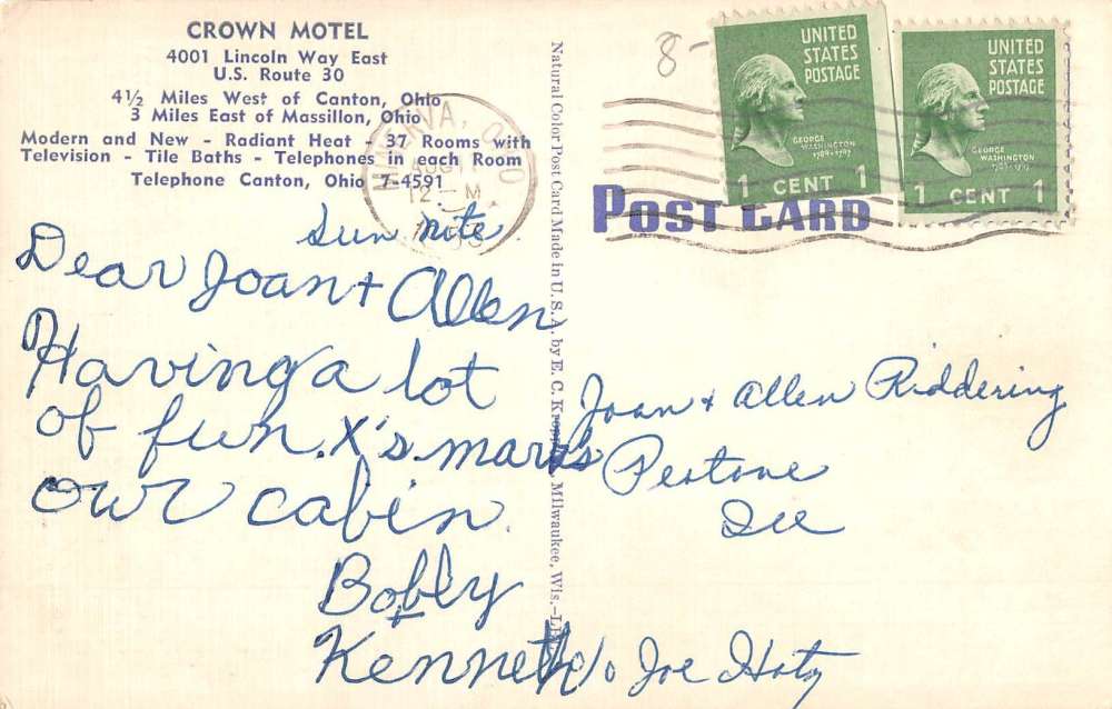 Canton Ohio Crown Motel Birdseye View Antique Postcard K55166