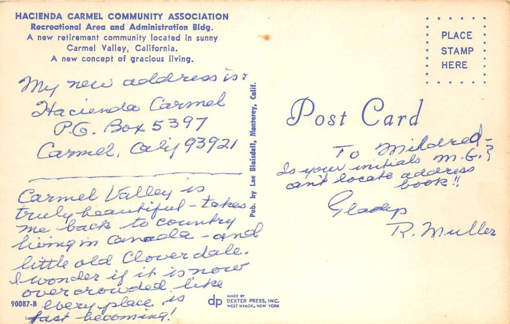 Carmel Valley California Hacienda Carmel Community Pool Postcard AA111338