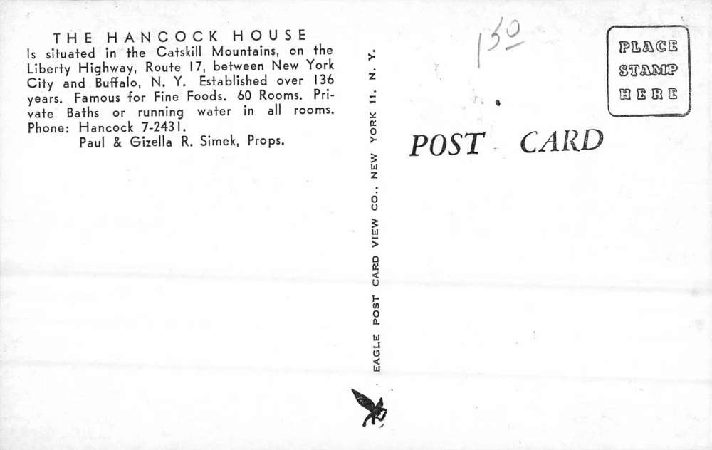 Catskill Mountains New York Hancock House Street View Antique Postcard K72373
