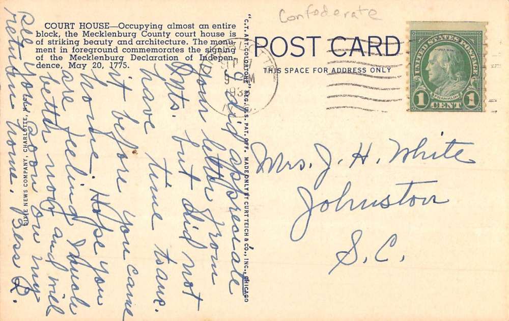Charlotte North Carolina Mecklenburg Court House Antique Postcard K87875