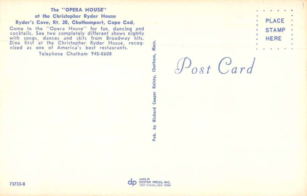 Chathamport Massachusetts Christopher Ryder Opera House Ad Postcard J68507
