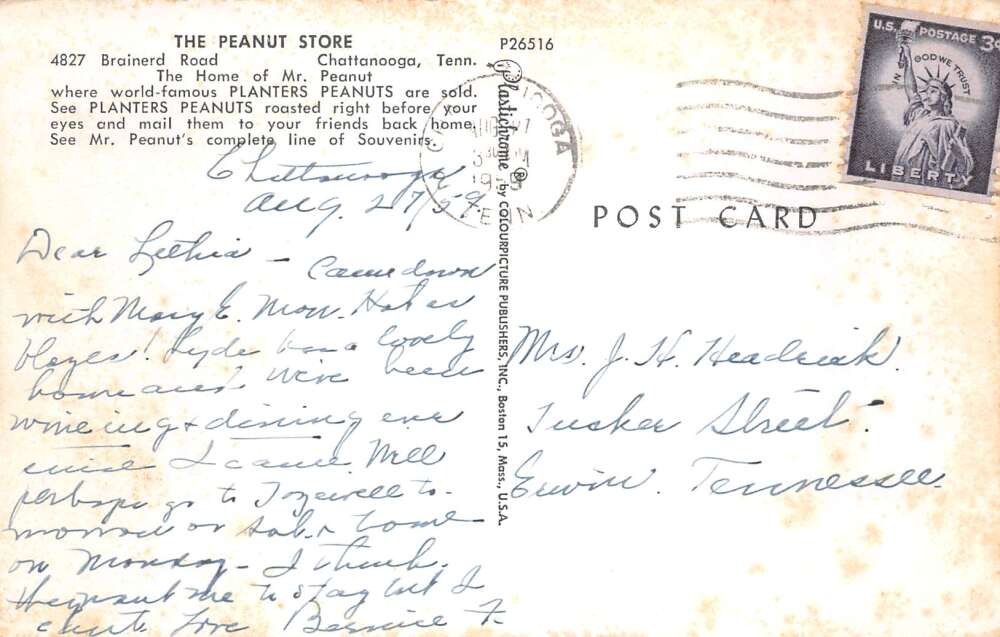 Chattanooga Tennessee The Peanut Store Planters Peanuts Postcard AA106730