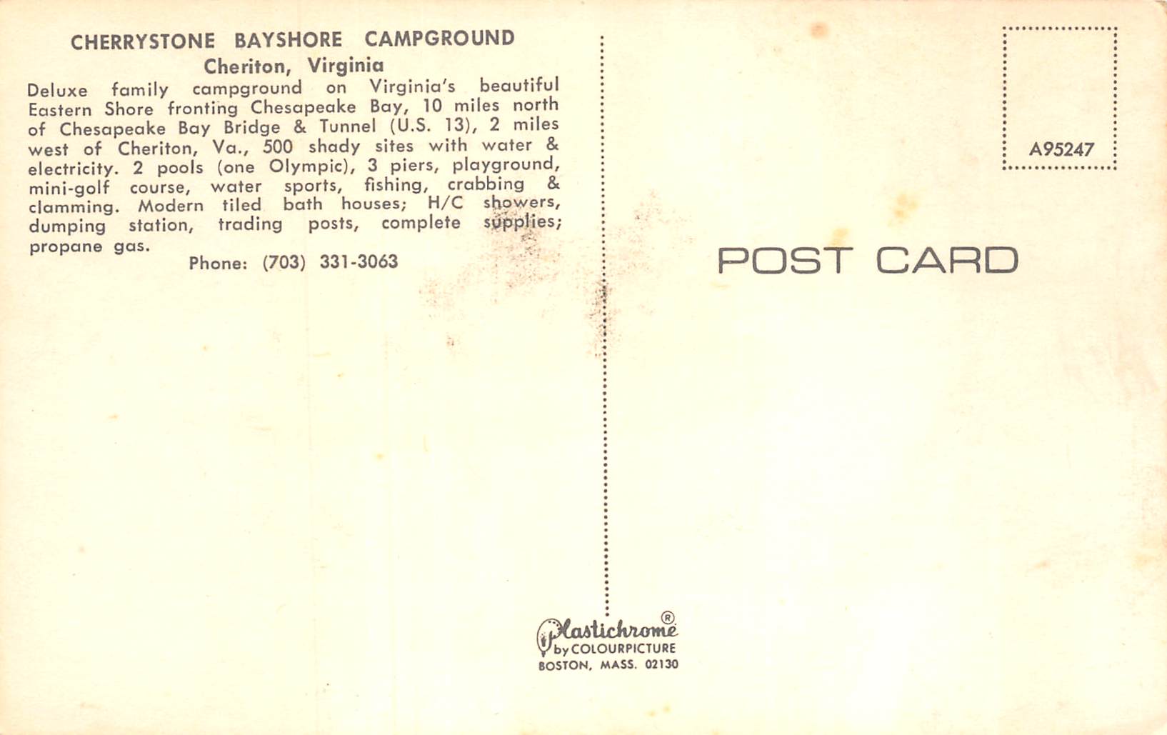 Cheriton Virginia Cherrystone Bayshore Campground, Chrome, Vintage PC U26773