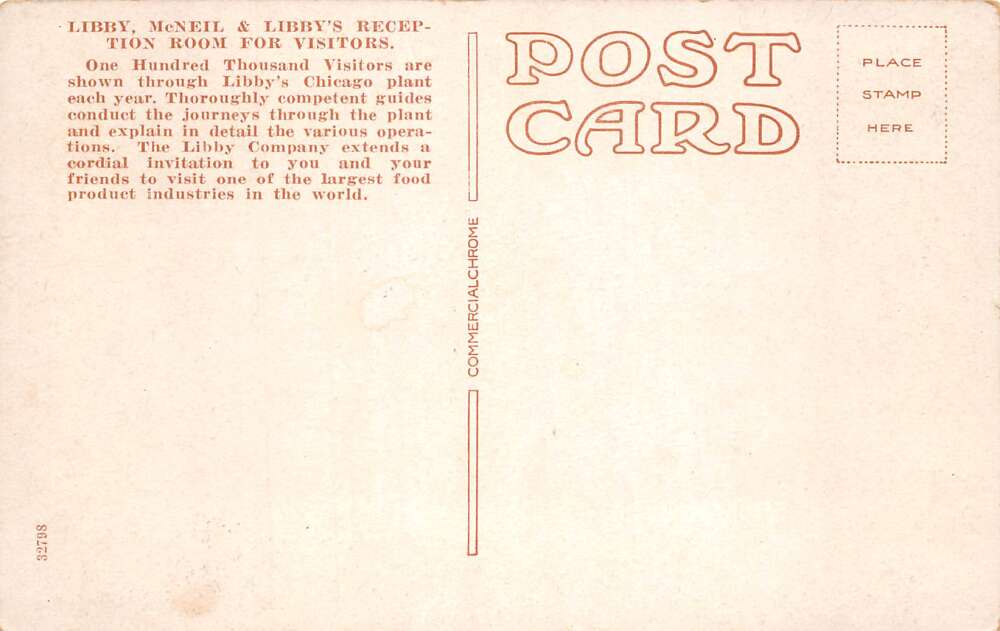 Chicago Ilinois Libby McNeil Co Reception Room Vintage Postcard AA90604