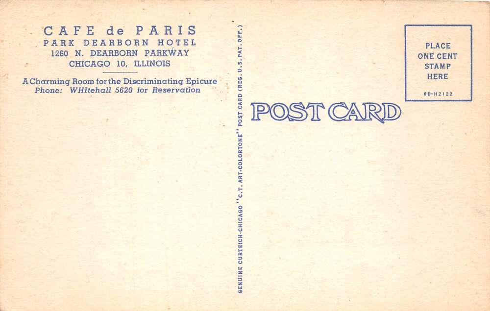 Chicago Illinois Cafe de Paris Park Dearborn Hotel Vintage Postcard AA112488