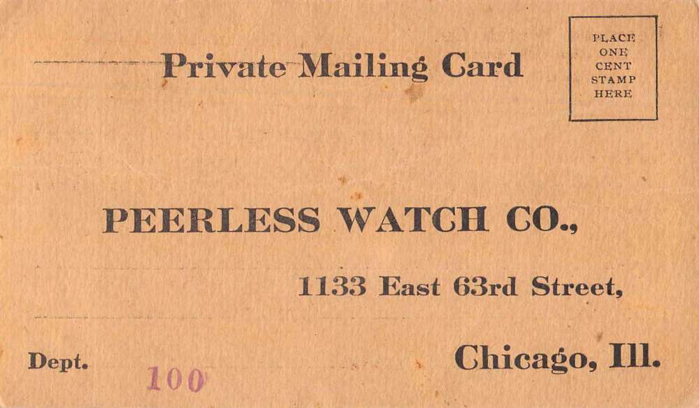 Chicago Illinois Peerless Watch Co Advertising Postal Private Mail PC J75373
