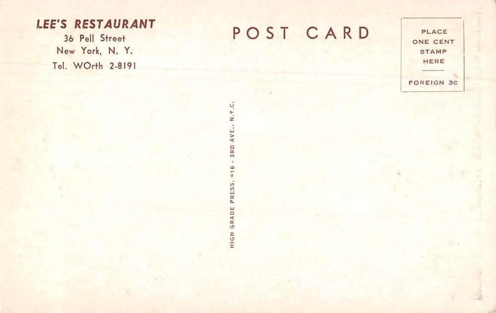 Chinatown New York Lee’s Restaurant Chinese Restaurant Vintage Postcard JE359710