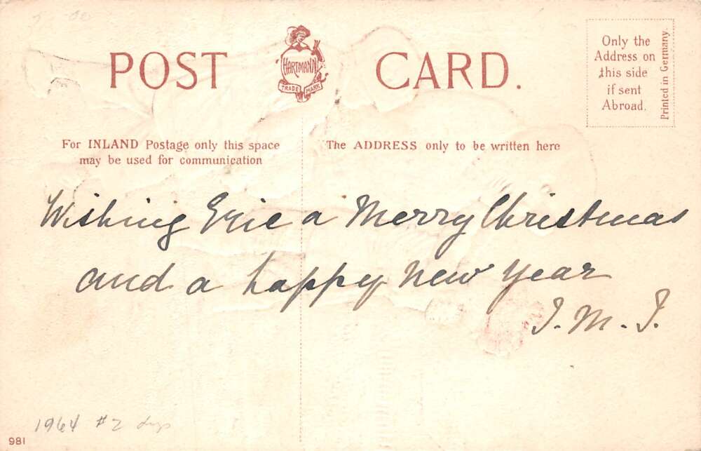 Christmas Greetings Children building Snowman Embossed Hartmann PC AA109998