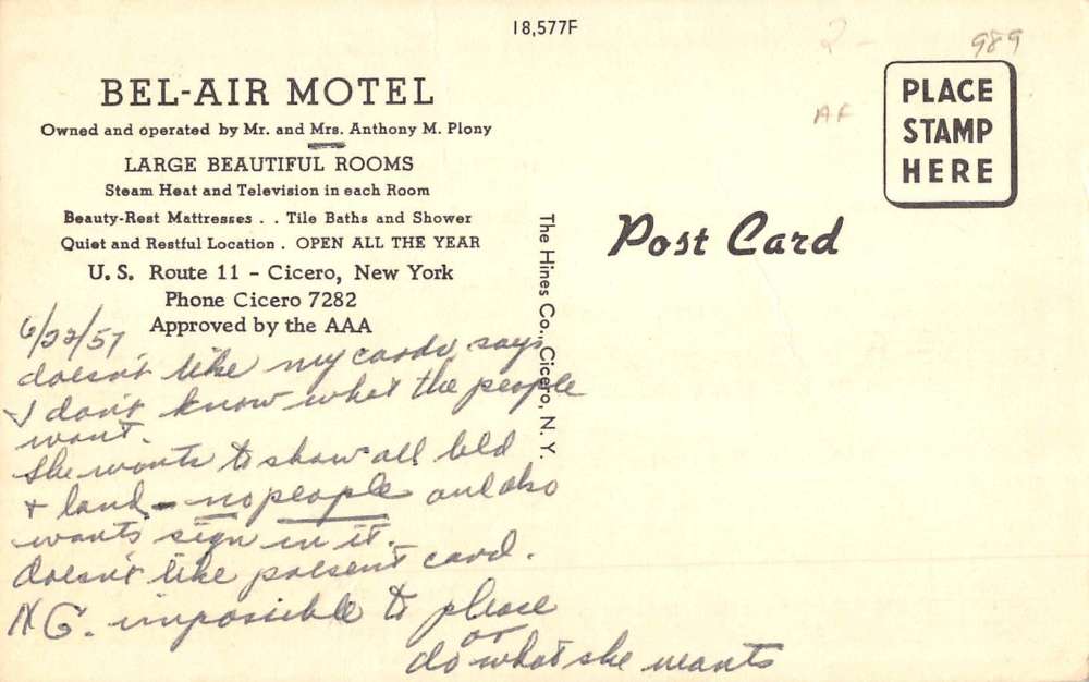Cicero New York Bel Air Motel Street View Antique Postcard K70314