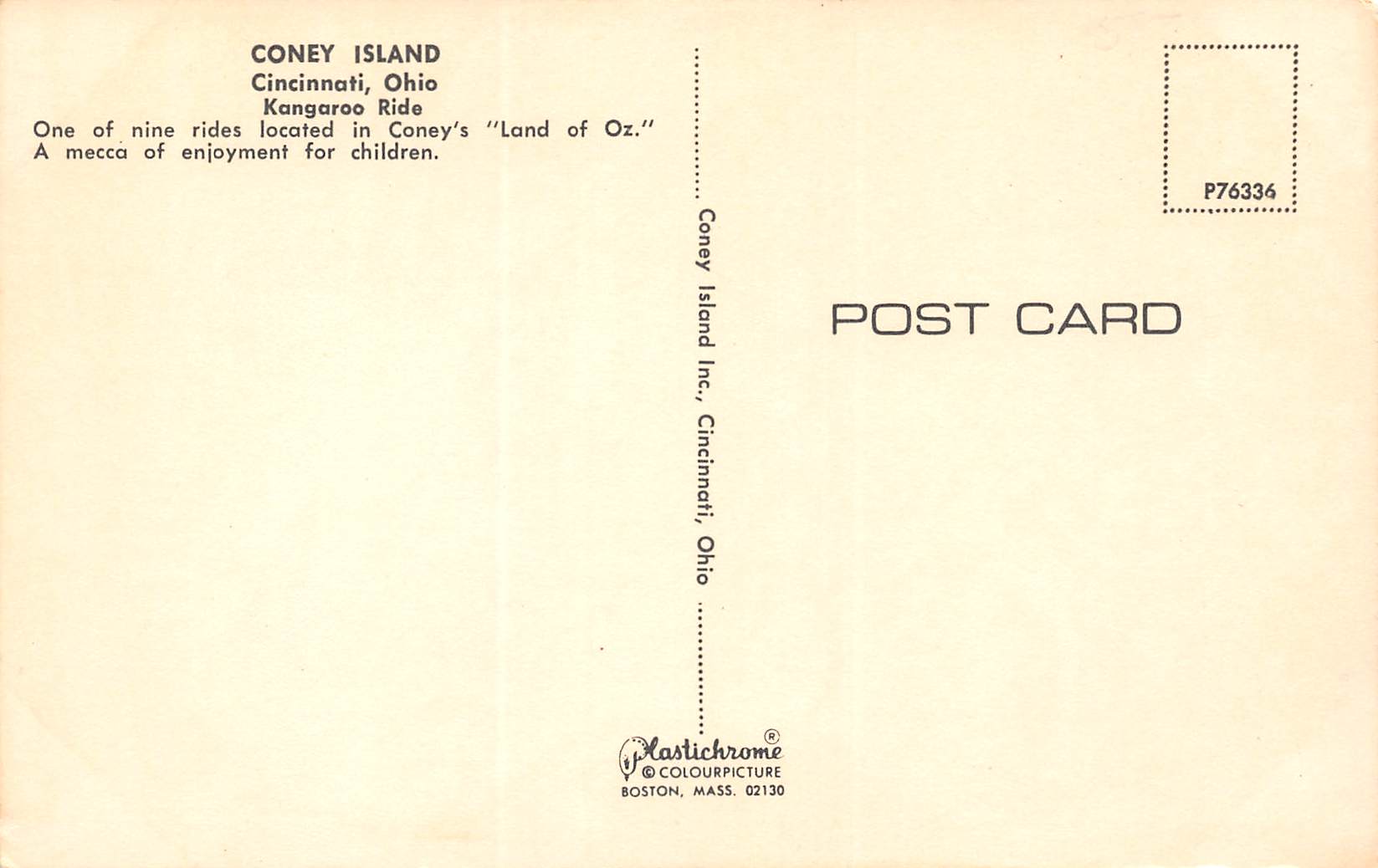 Cincinnati Ohio Coney Island Park, Beach & Pool, Kangaroo Ride, PC U9927