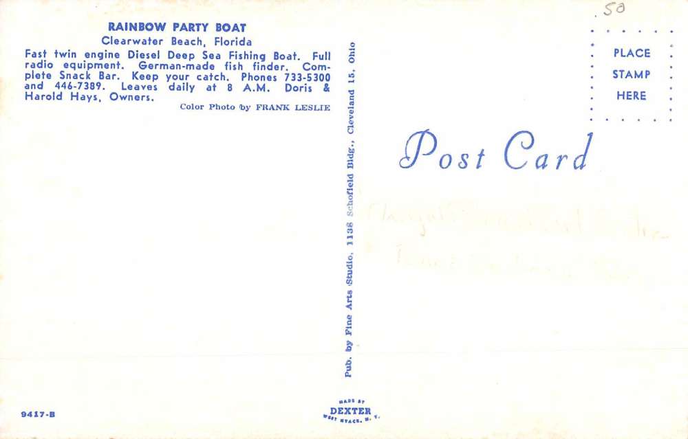 Clearwater Beach Florida Rainbow Party Boat Waterfront Vintage Postcard K61017