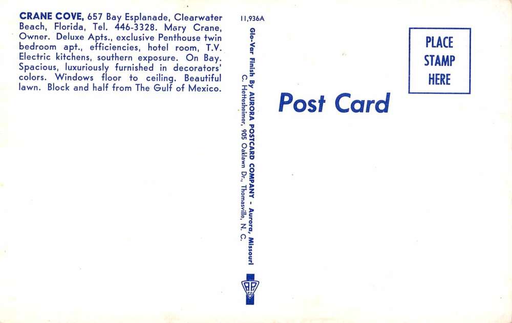 Clearwater Beach Florida tourist apartments Crane Cove vintage pc Z43839