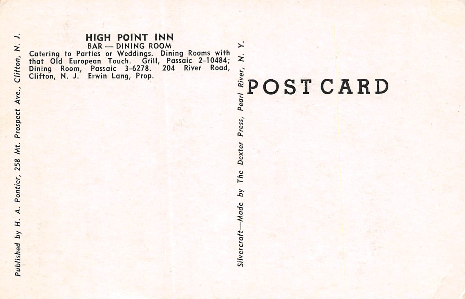 Clifton New Jersey High Point Inn, B/W Photo Print Vintage Postcard U12091