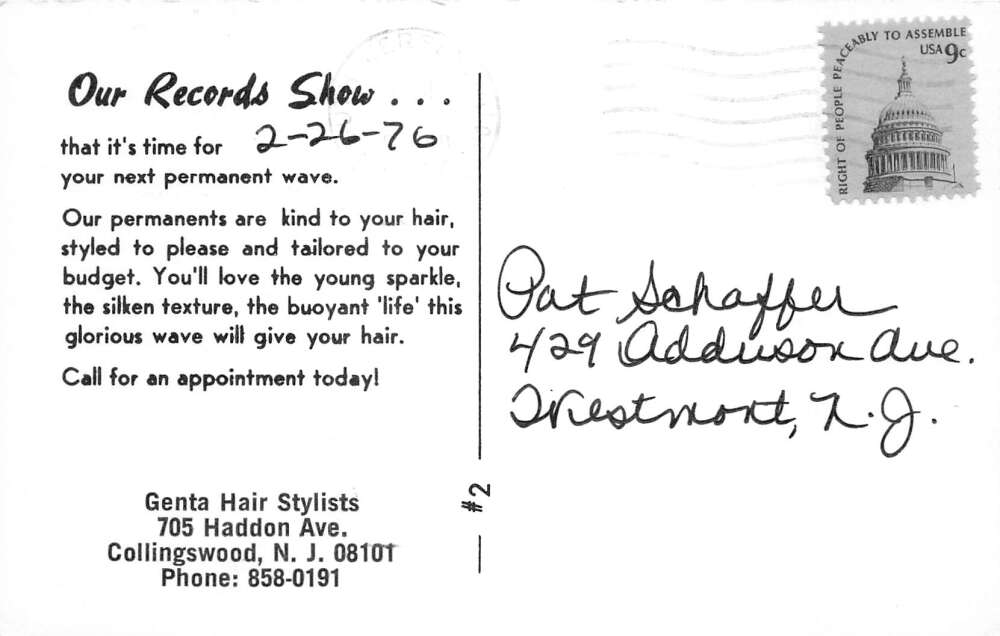 Collingswood New Jersey Genta Beauty Salon Ad Jessica Lange Postcard AA112366