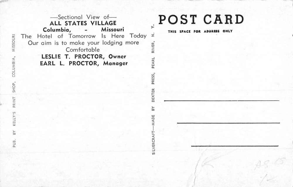 Columbia Missouri All States Village Street View Antique Postcard K88422