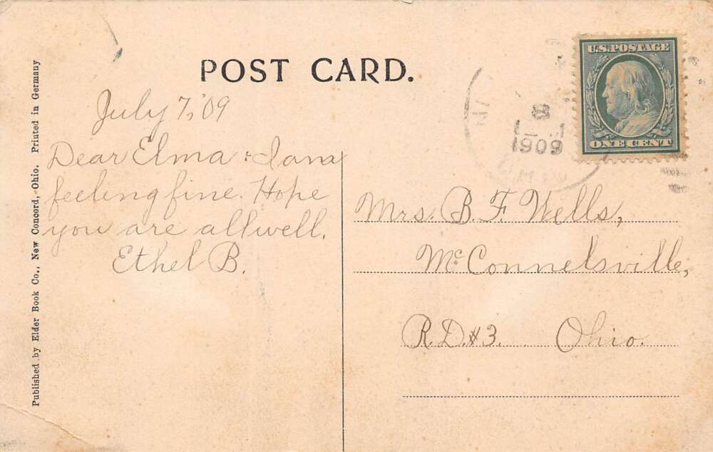 Concord Ohio Bird’s Eye View Of New Concord, B/W Lithograph Vintage PC U16120