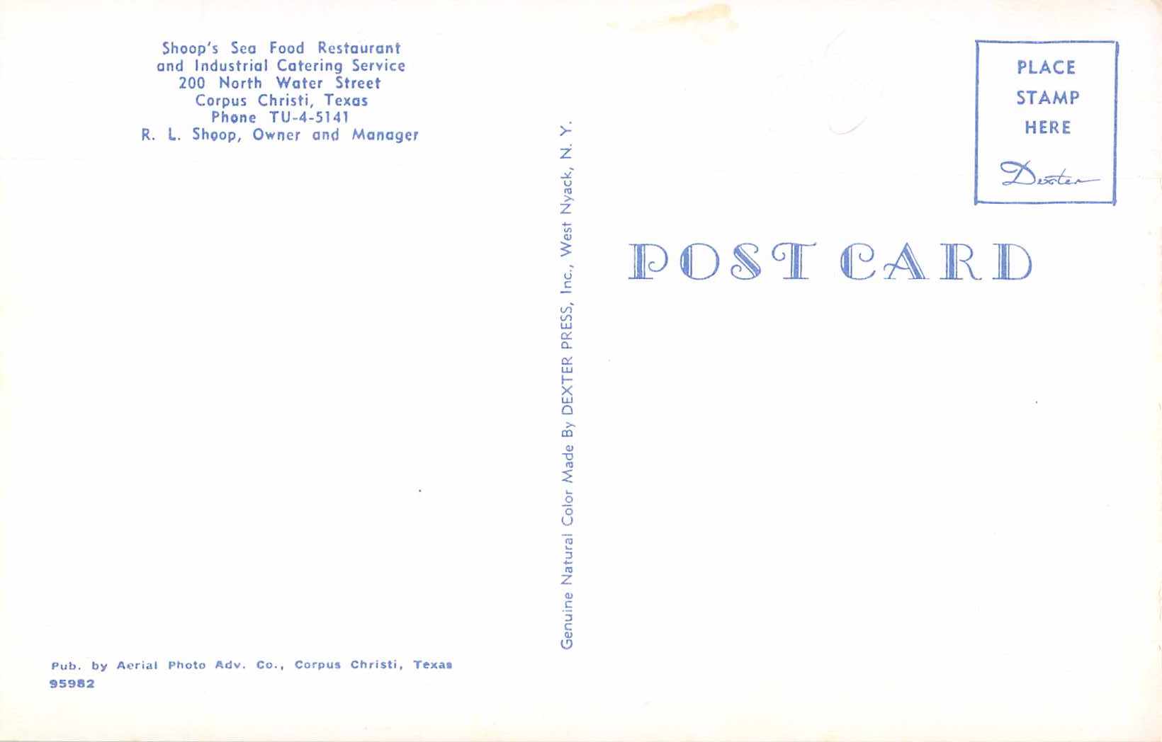 Corpus Christi Texas Shoop’s Sea Food Restaurant Vintage Postcard JE229942