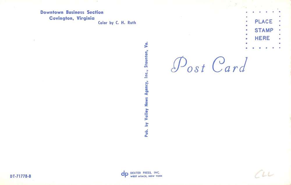 Covington Virginia street scene downtown business area vintage pc Y12696