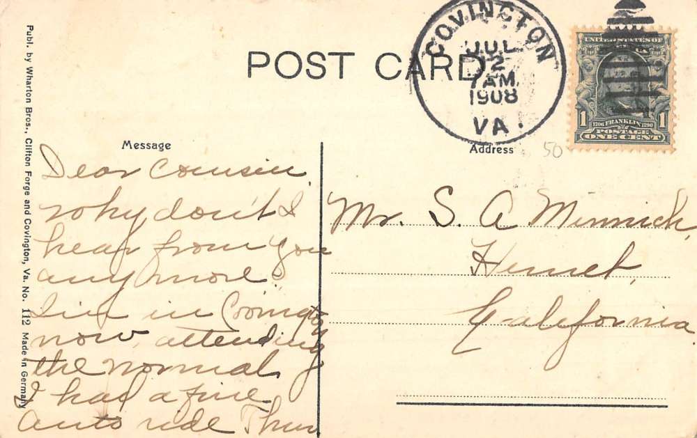 Covington Virginia Water Street Scene Scenic View Antique Postcard K88912