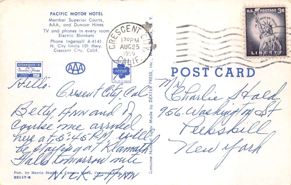 Crescent City California Pacific Motor Hotel Vintage Postcard AA73636