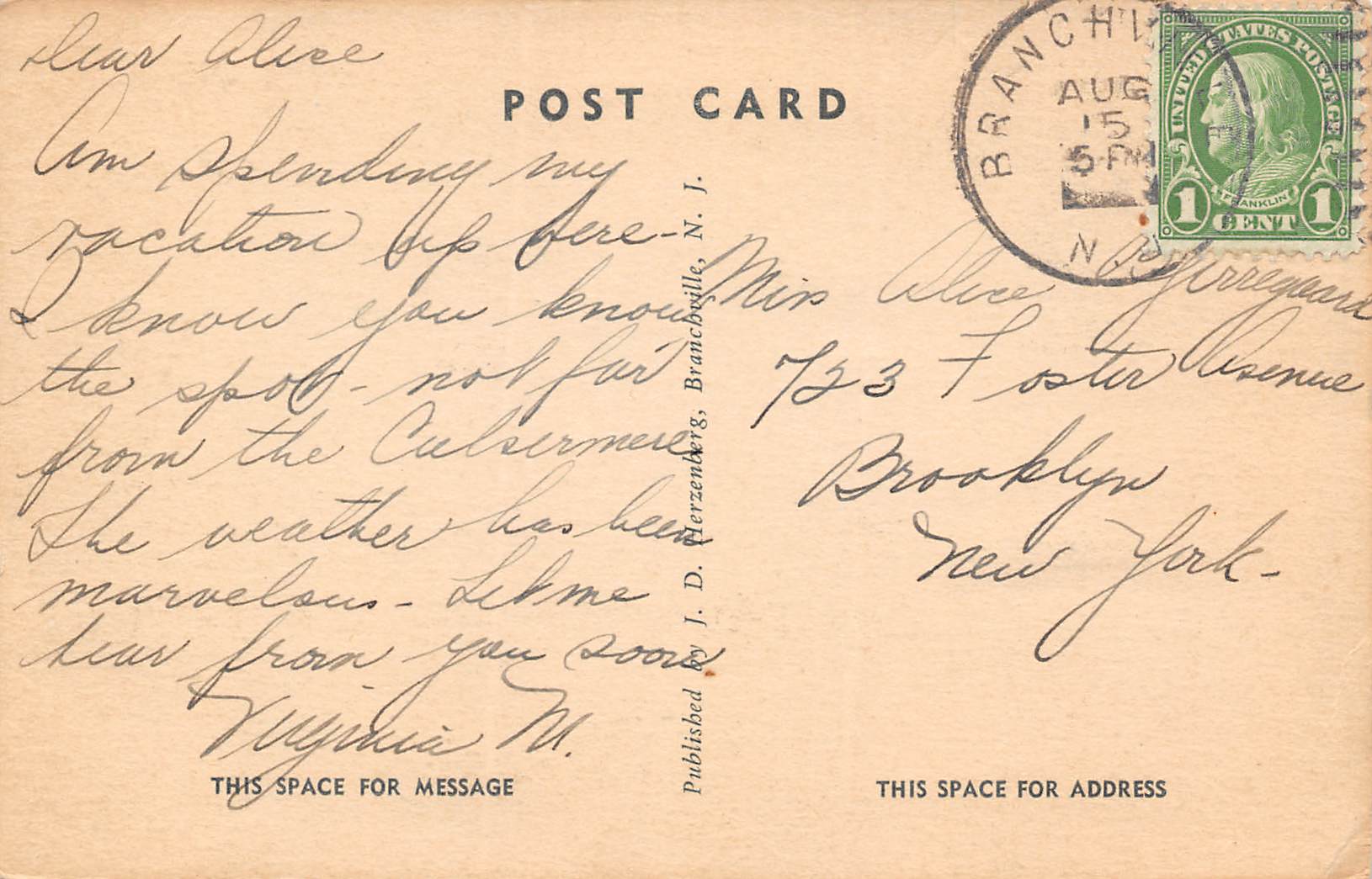 Culver Lake New Jersey View Of Lake Culver, Divided Back Vintage Postcard U11238
