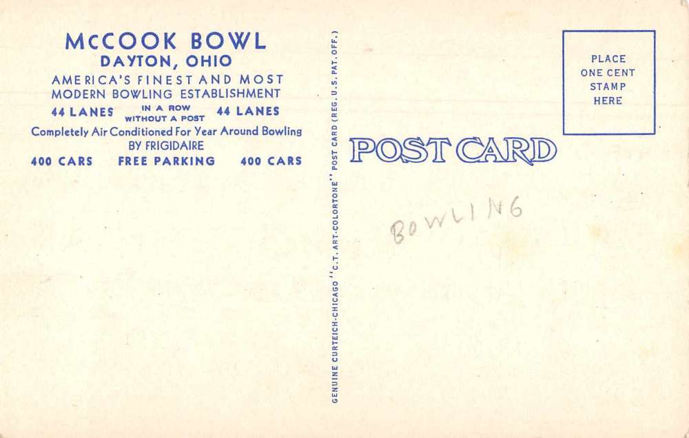 Dayton Ohio McCook Bowl Bowling Alley and Airplane Postcard AA6445