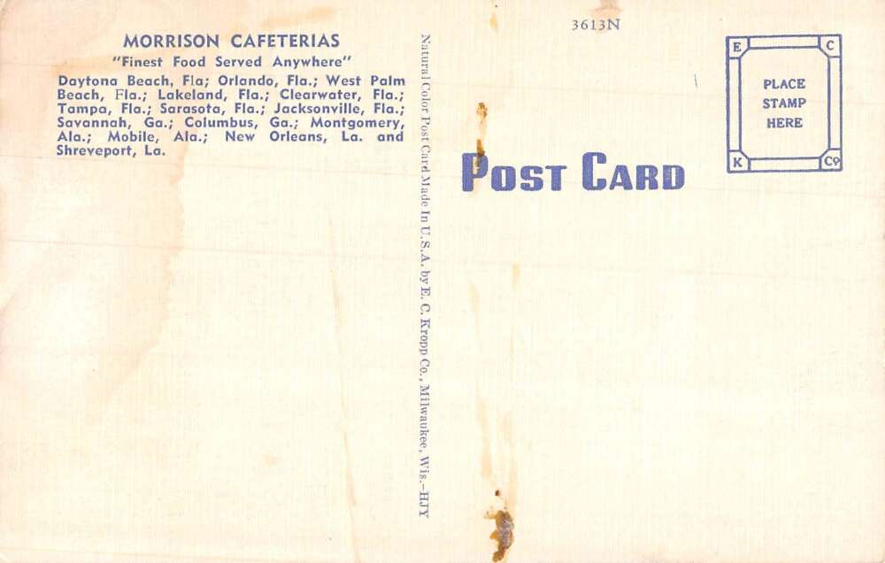 Daytona Beach Florida Greetings From Morrison’s Cafeteria antique pc BB3374
