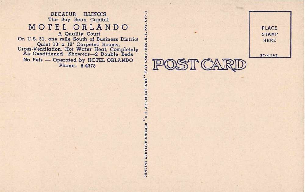 Decatur Illinois Motel Orlando Linen Antique Postcard J50381