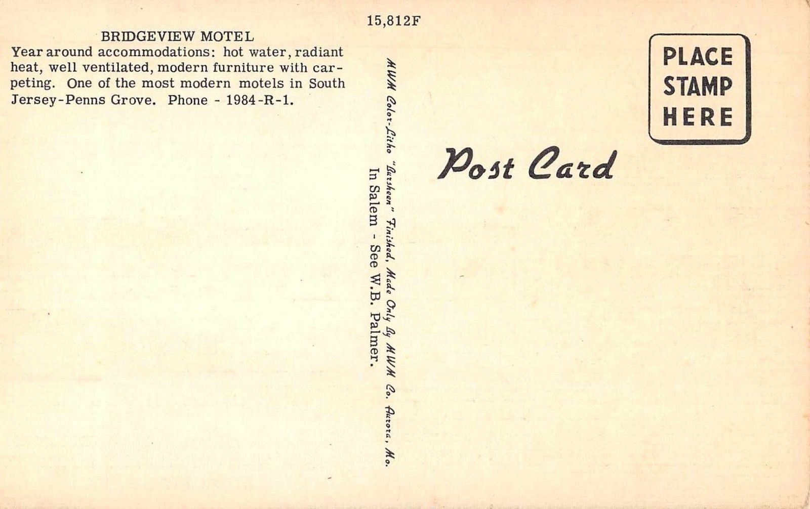 Deepwater New Jersey Bridgeview Motel Antique Postcard (J36012)