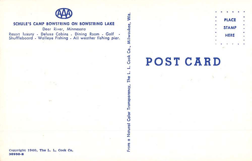 Deer River Minnesota Schule Camp Bowstring Vintage Postcard K55805