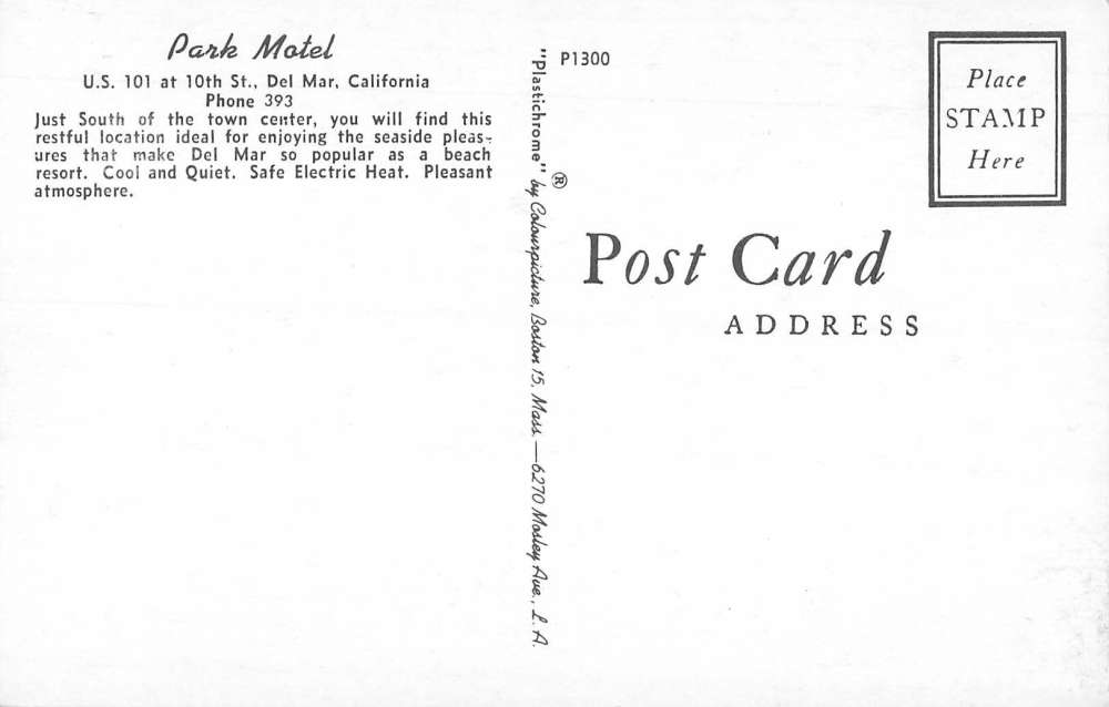 Del Mar California Park Motel Street View Vintage Postcard KA688602