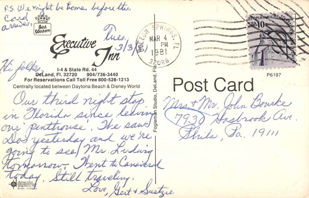 DeLand Florida Executive Inn Best Western Vintage Postcard J73901