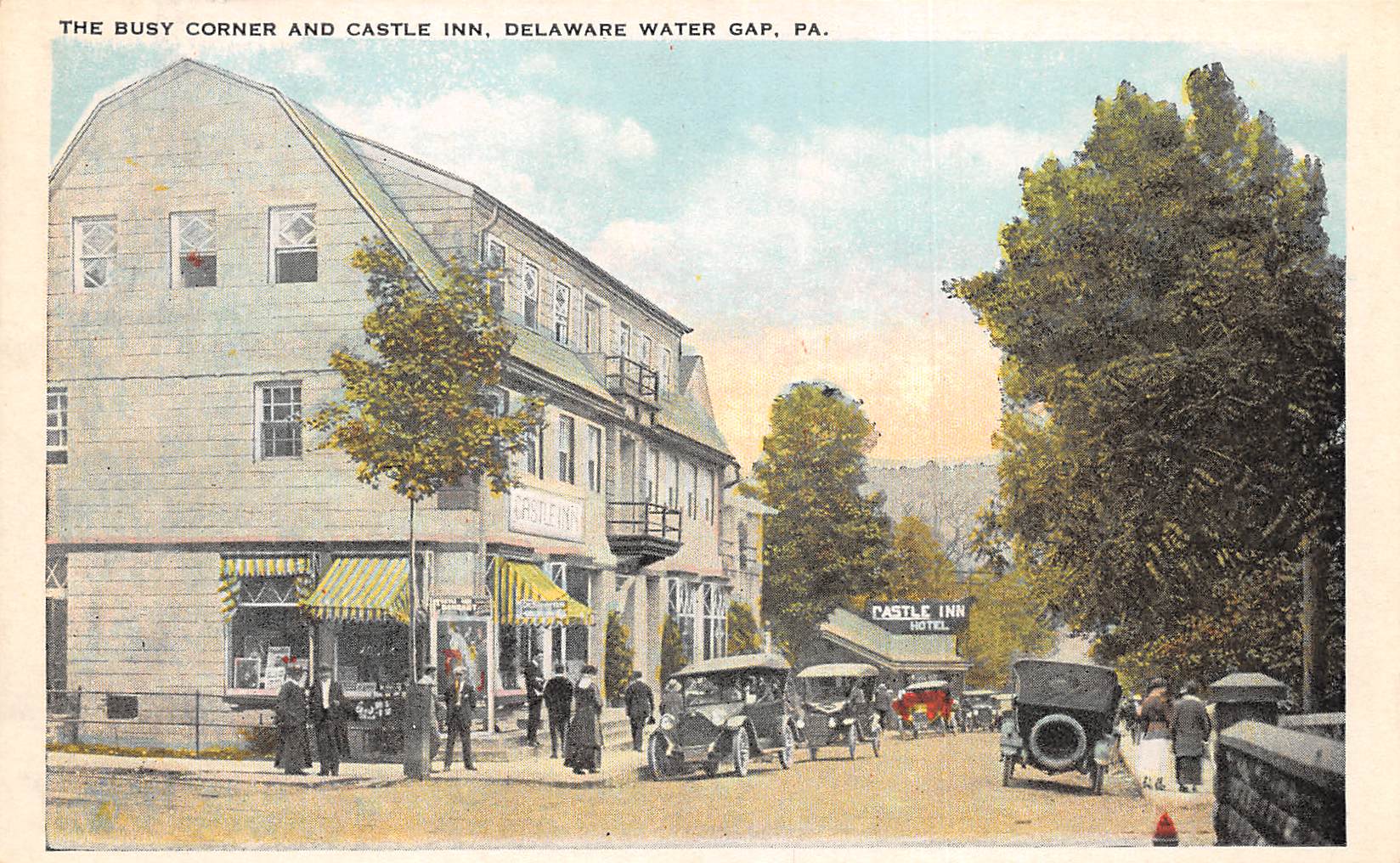 Delaware Water Gap Pennsylvania Busy Corner & Castle Inn,White Border PC U12296