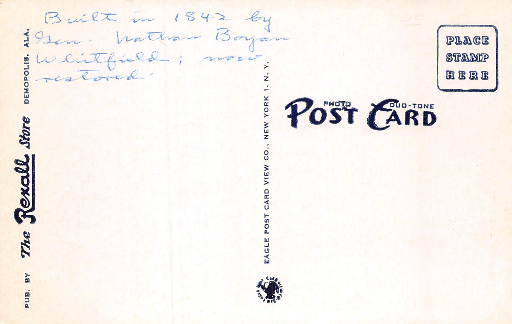 Demopolis Alabama Gaineswood, White Border Vintage Postcard U12352