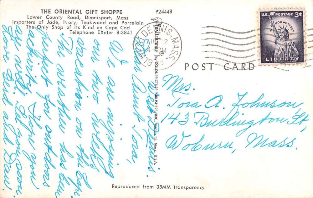 Dennisport Massachusetts Oriental Gift Shoppe Vintage Postcard K38267