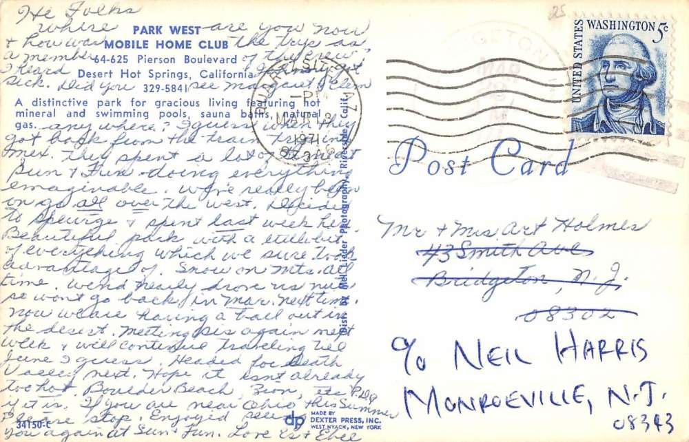 Desert Hot Springs California Park West Mobile Home Club Postcard K88832