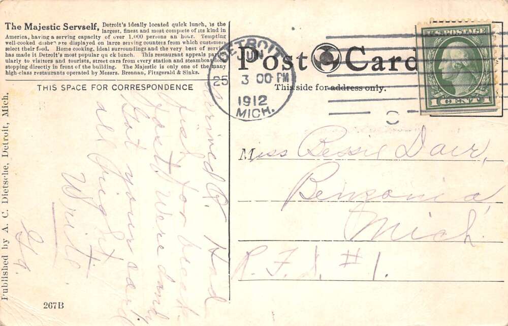 Detroit Michigan Majestic Servself Restaurant Vintage Postcard AA110993