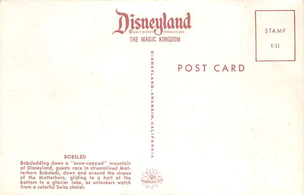 Disneyland Tomorrowland Bobsledding Vintage Postcard AA104251