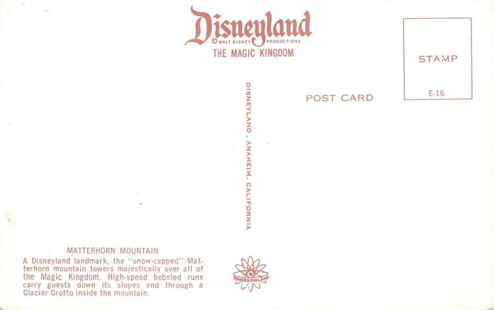 Disneyland Tomorrowland Matterhorn Monorail Vintage Postcard AA112661