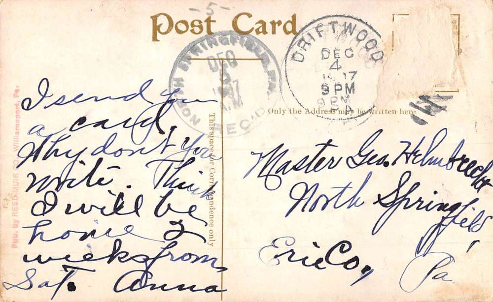Driftwood Pennsylvania Flower Greeting Antique Postcard K82948