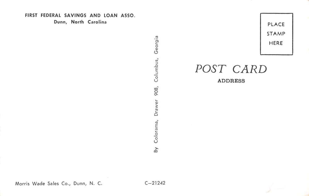 Dunn North Carolina First Federal Savings and Loan Bank Vintage Postcard AA27092