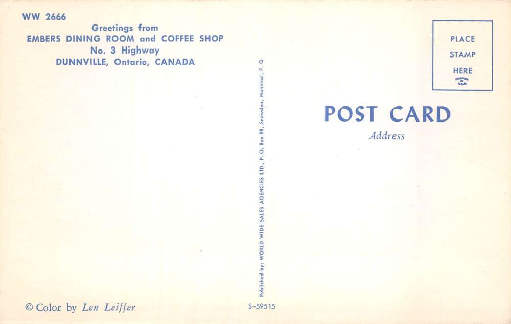 Dunnville Ontario Canada Embers Dining Room Jukebox Vintage Postcard AA112651